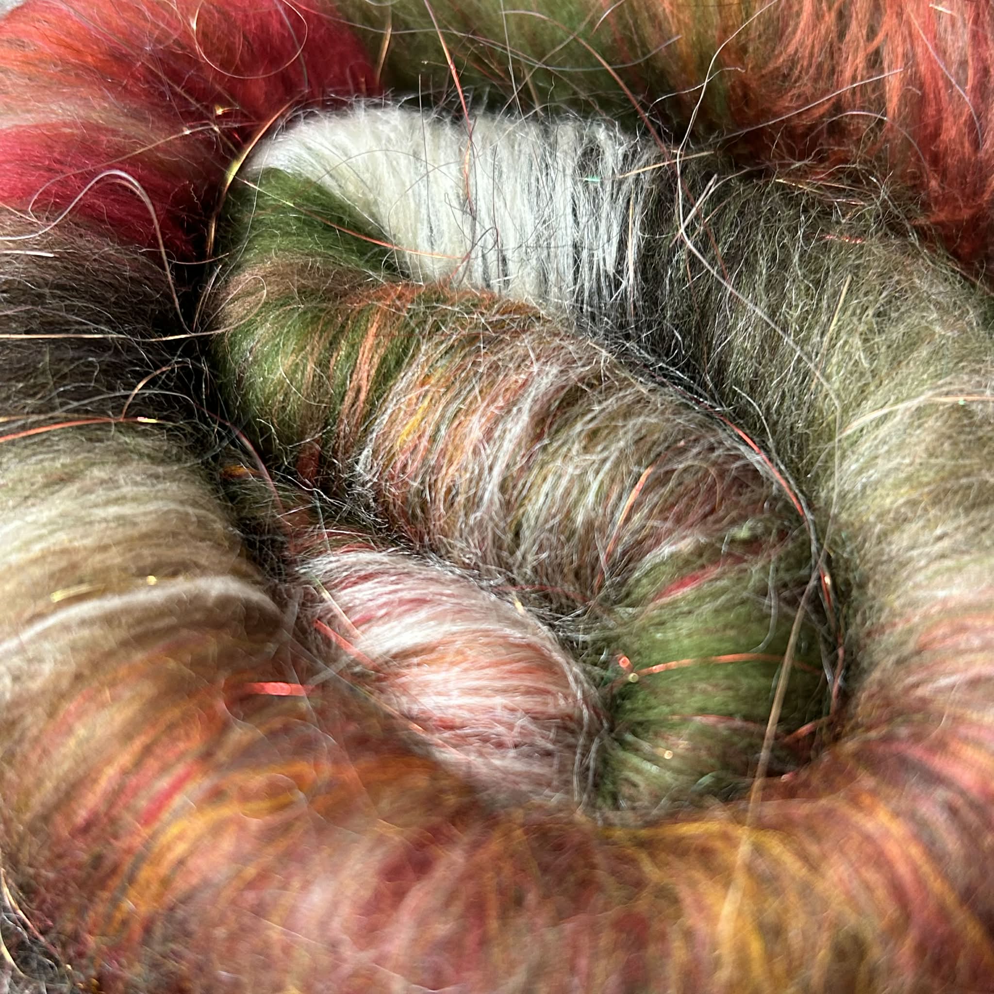 Everything But the Kitchen Sink (EBTKS) Art Batts are made from premium and luxury fibers that may include silks, wools, bamboo, specialty fibers and more. The photo is the actual item you will receive. These are quality fibers and vibrant colors you’ll love to spin up. No VM. The EBTKS art batts won’t contain a list of exact fibers used as my other fiber art batts do. Please see photos.