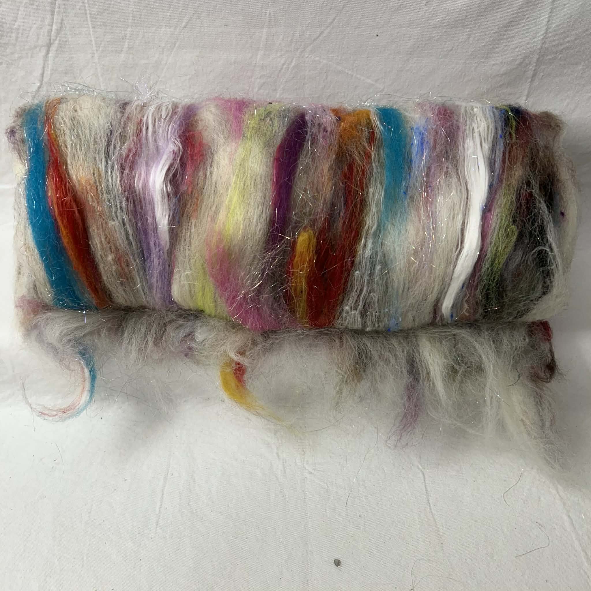 Everything But the Kitchen Sink (EBTKS) Art Batts are made from premium and luxury fibers that may include silks, wools, bamboo, specialty fibers and more. The photo is the actual item you will receive. These are quality fibers and vibrant colors you’ll love to spin up. No VM. The EBTKS art batts won’t contain a list of exact fibers used as my other fiber art batts do. Please see photos.