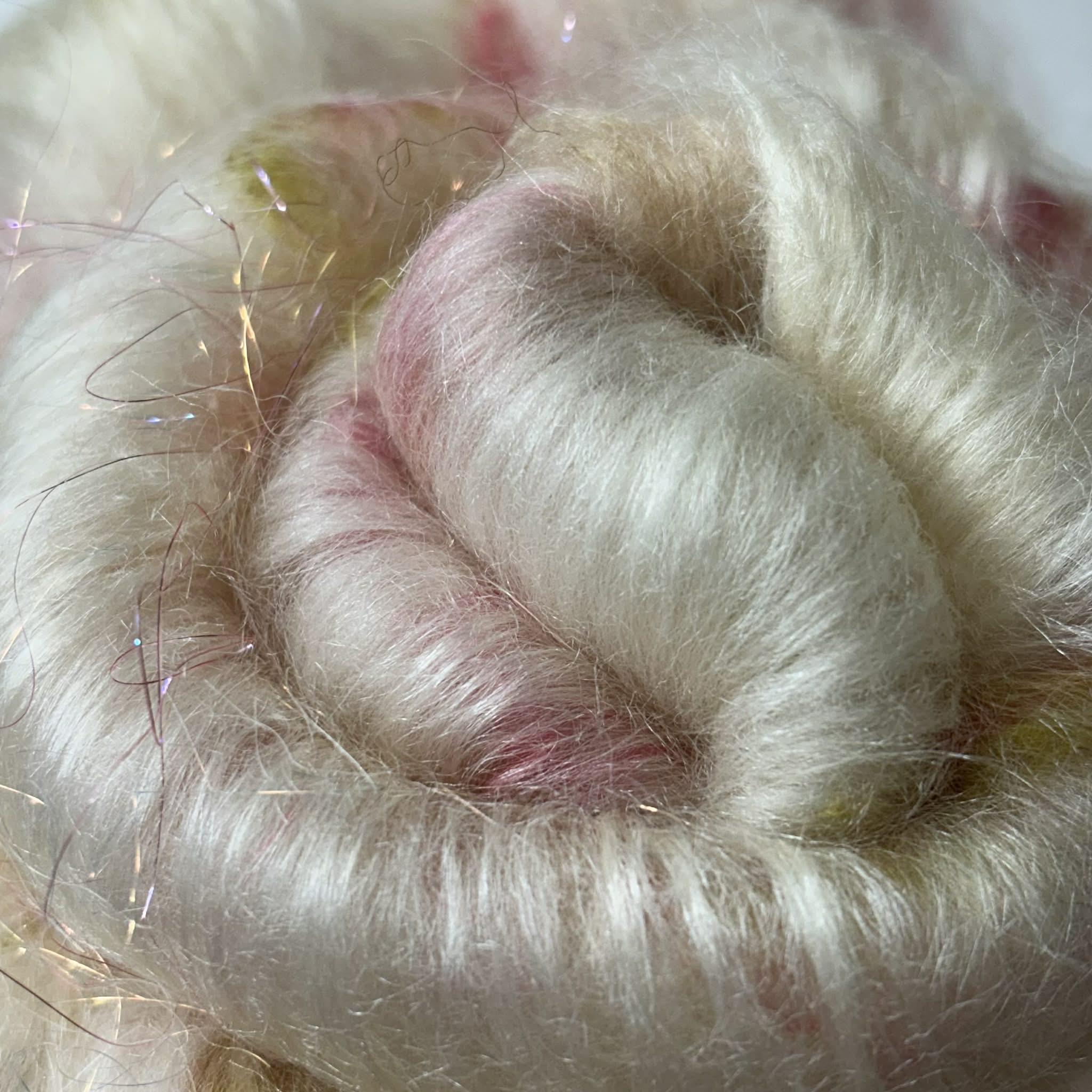 Everything But the Kitchen Sink (EBTKS) Art Batts are made from premium and luxury fibers that may include silks, wools, bamboo, specialty fibers and more. The photo is the actual item you will receive. These are quality fibers and vibrant colors you’ll love to spin up. No VM. The EBTKS art batts won’t contain a list of exact fibers used as my other fiber art batts do. Please see photos.